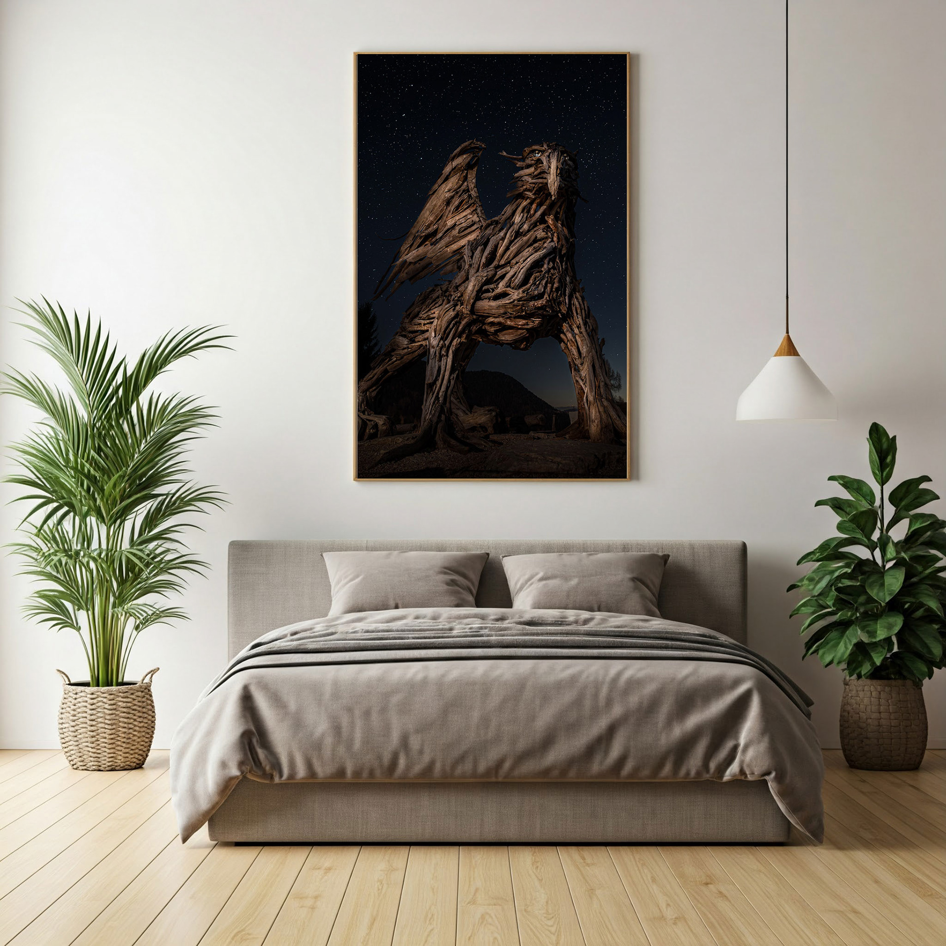 Through night photography, the Vaia Dragon and Gryphon are immortalized not just as sculptures, but as enduring symbols of nature's strength and the human spirit's capacity to create beauty from adversity.