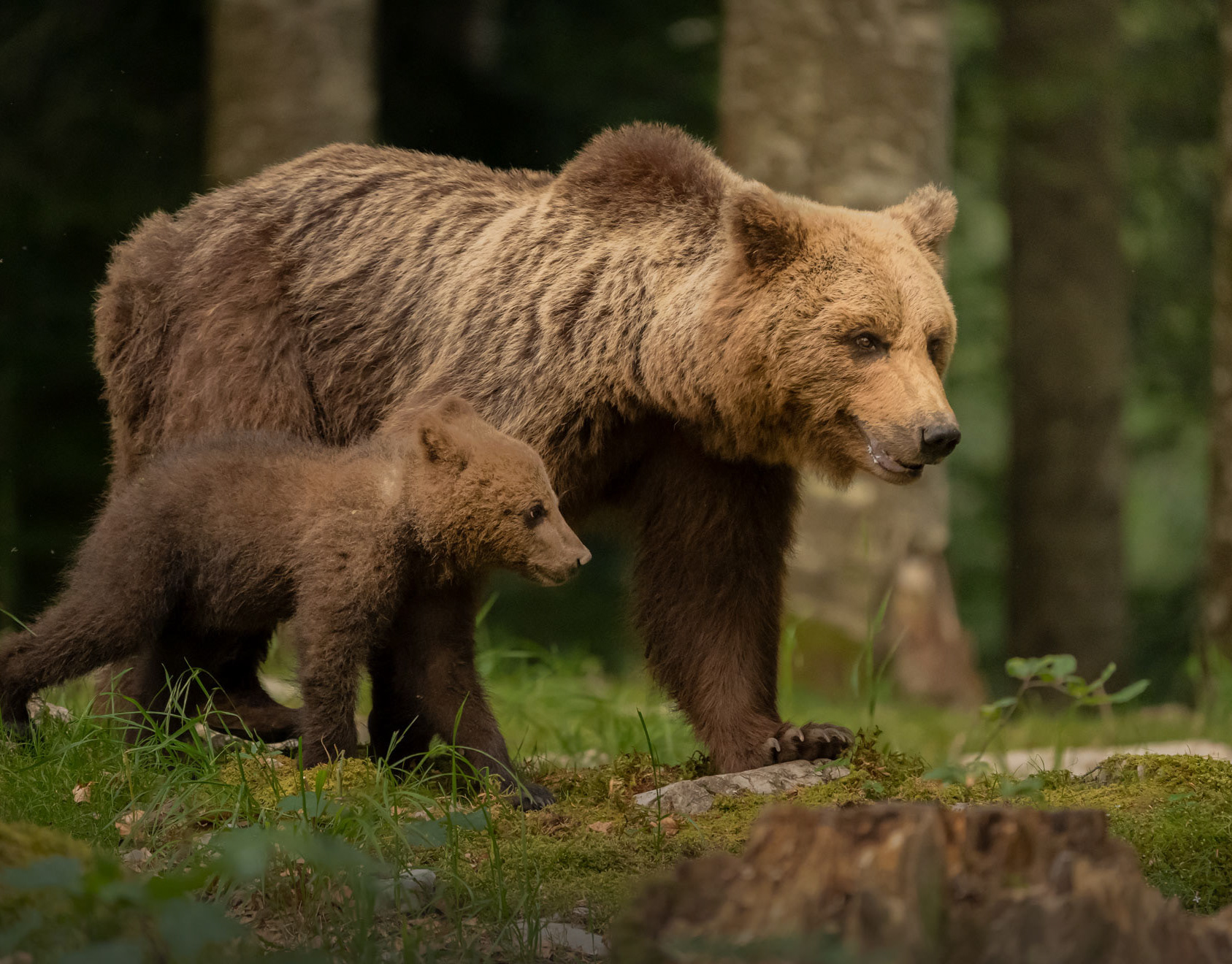 Witness the heartwarming bond of a mother bear and her two playful cubs through stunning wildlife photography. Intimate moments in nature's embrace.